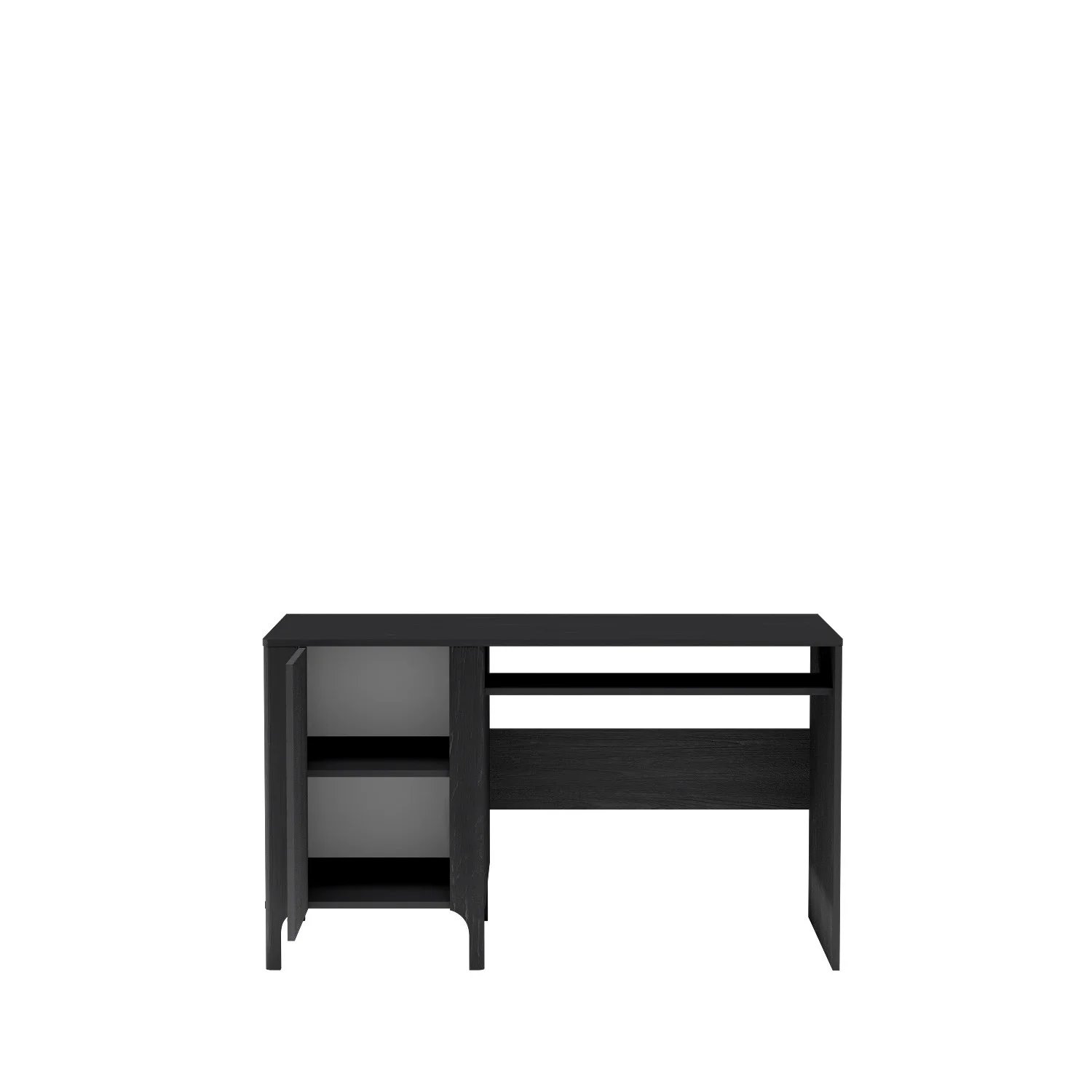 Stabilna konstrukcja wykonana z trwałych materiałów zapewnia komfort użytkowania i długą żywotność mebla. Głęboka czerń sprawia, że biurko łatwo dopasować do różnych aranżacji wnętrz, podkreślając ich nowoczesny styl. Mebel doskonale sprawdzi się w biurze, pokoju młodzieżowym oraz domowym gabinecie