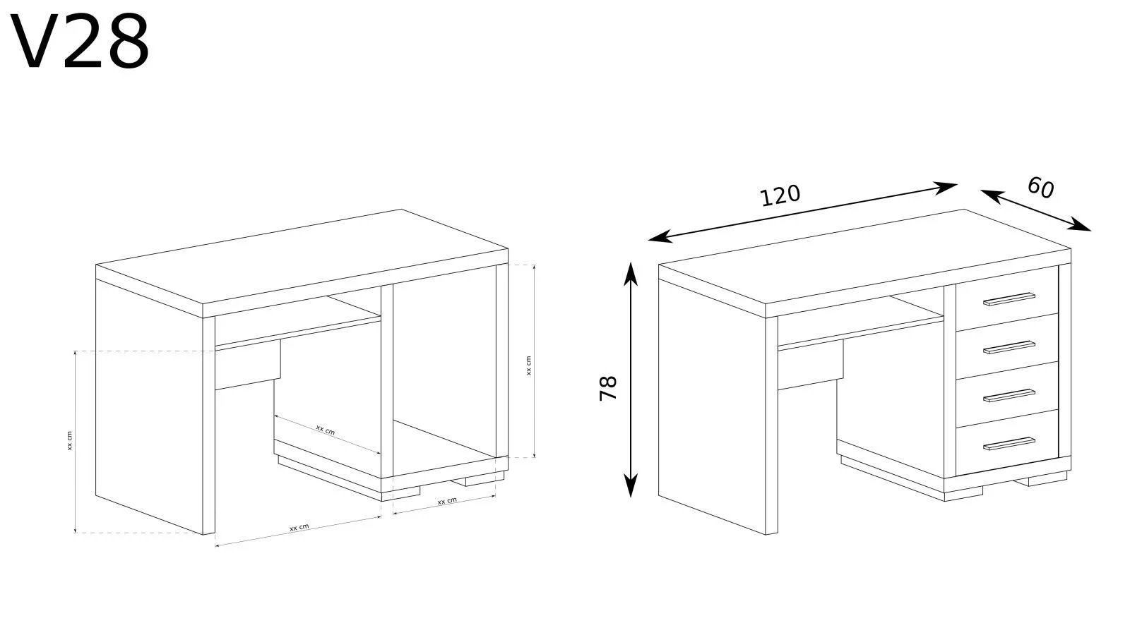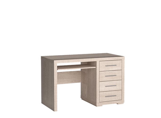 Biurko z kolekcji Vegas to funkcjonalny mebel, który ułatwia codzienną organizację pracy i przechowywanie niezbędnych przedmiotów. Wyposażone w cztery pojemne szuflady, zapewnia miejsce na dokumenty, książki oraz akcesoria biurowe, pomagając utrzymać porządek na blacie.Wysuwana półka sprawdzi się jako miejsce na klawiaturę, laptopa lub najpotrzebniejsze rzeczy, zwiększając komfort użytkowania. Metalowe uchwyty podkreślają wyrazisty charakter mebla i nadają mu zdecydowanego, eleganckiego wyglądu.