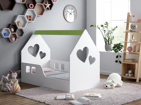 Łóżko dziecięce House w rozmiarze 160x80 to połączenie stylu, bezpieczeństwa i komfortu, zaprojektowane z myślą o najmłodszych użytkownikach. Wykonane z solidnej płyty MDF oraz płyty laminowanej, gwarantuje wyjątkową trwałość i odporność na codzienne użytkowanie. Gładkie krawędzie oraz bezpieczne wykończenia zapewniają spokojny sen i bezpieczeństwo dziecka.Szeroki wybór kolorów i wzorów sprawia, że łóżko idealnie dopasuje się do każdego pokoju – zarówno chłopięcego, jak i dziewczęcego. Górne wstawki kolorystyczne wykonane z najwyższej jakości płyty meblowej dodają całości eleganckiego charakteru.