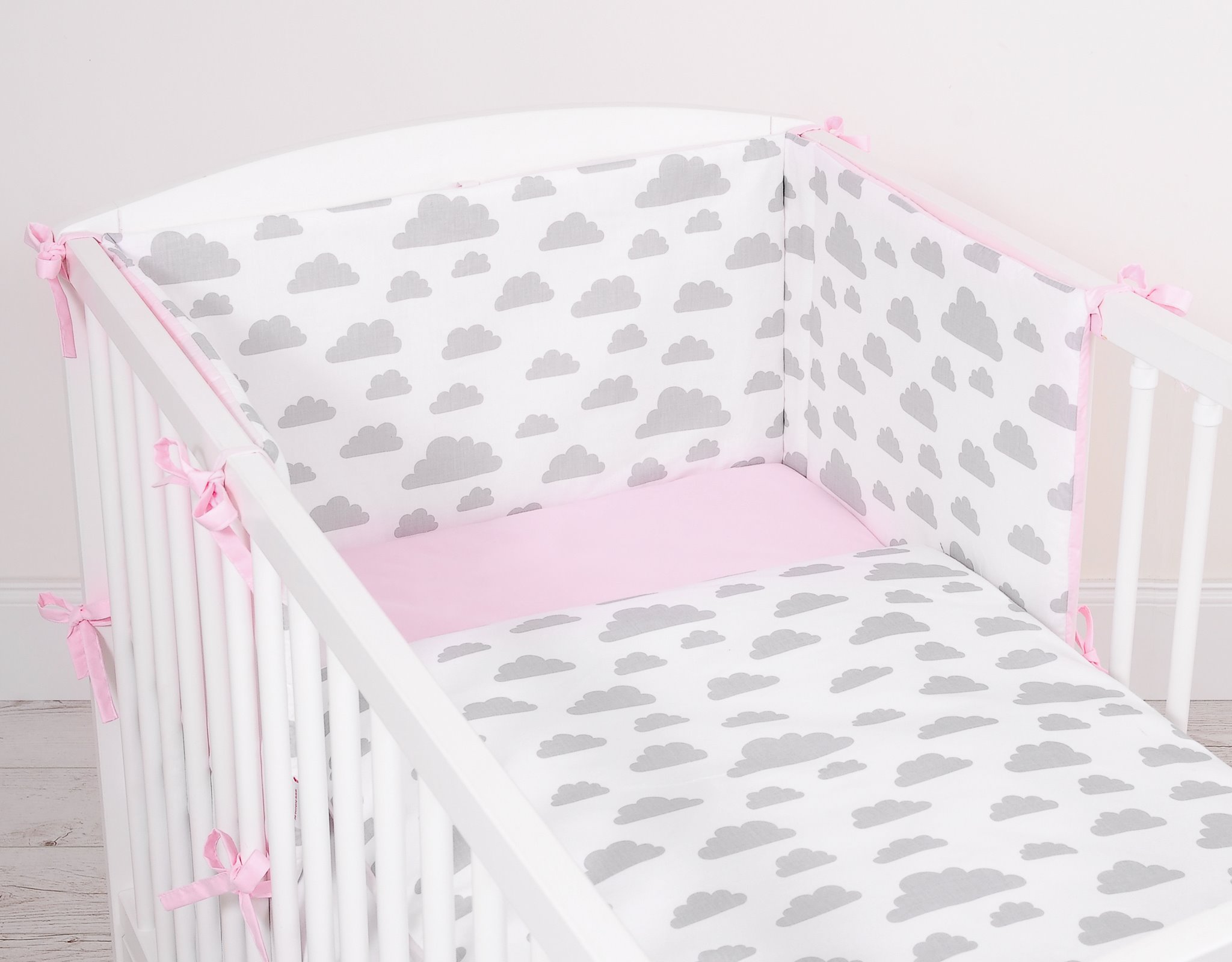 Ochraniacz wykonano z wysokiej jakości bawełny, odpornej na mechacenie i utratę koloru nawet po wielu praniach. Mocne bawełniane troczki umożliwiają szybki i stabilny montaż, a dwustronne wykonanie pozwala łatwo zmienić wystrój pokoju dziecięcego.