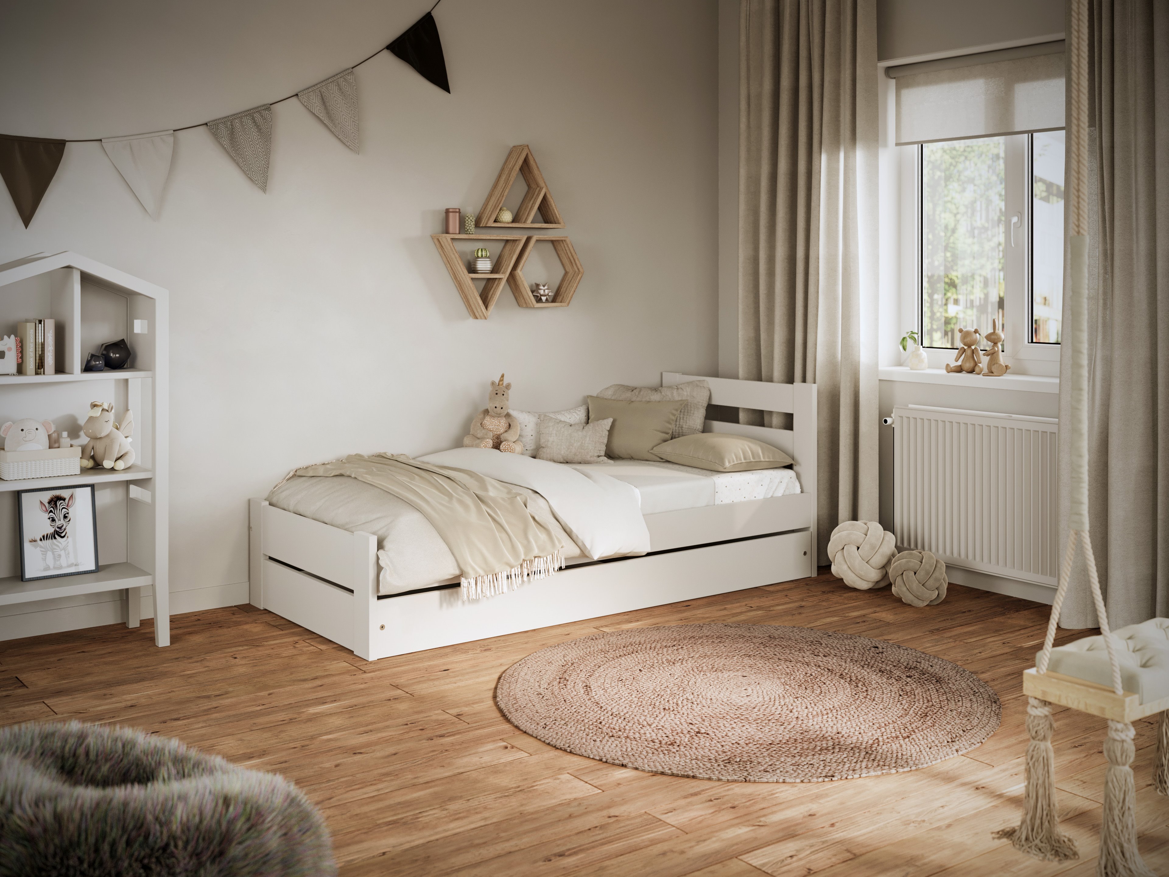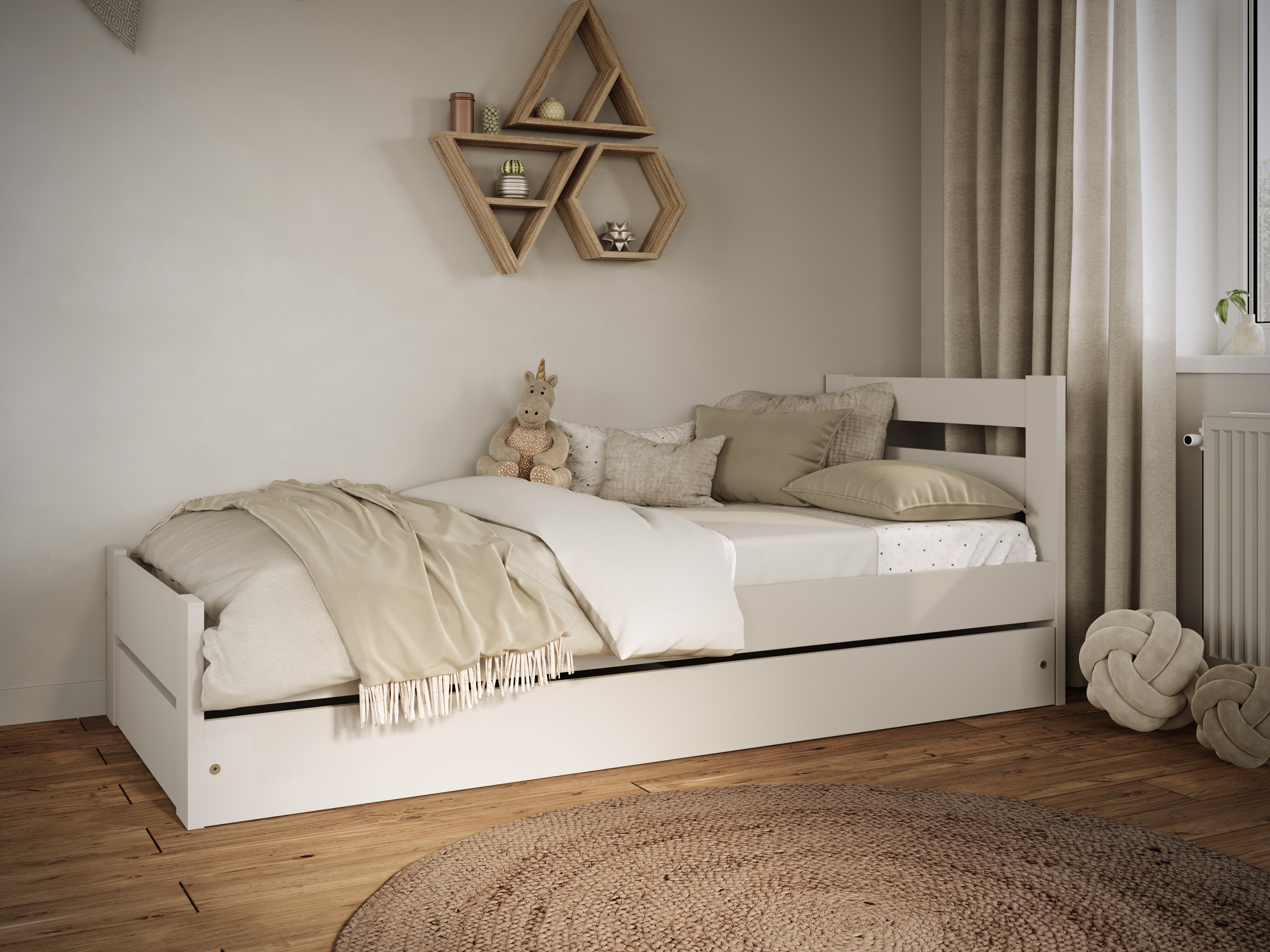 ✅ Funkcjonalna szuflada na pościel – pojemna, wysuwana szuflada to doskonałe miejsce na przechowywanie pościeli, ubrań czy akcesoriów sypialnianych.