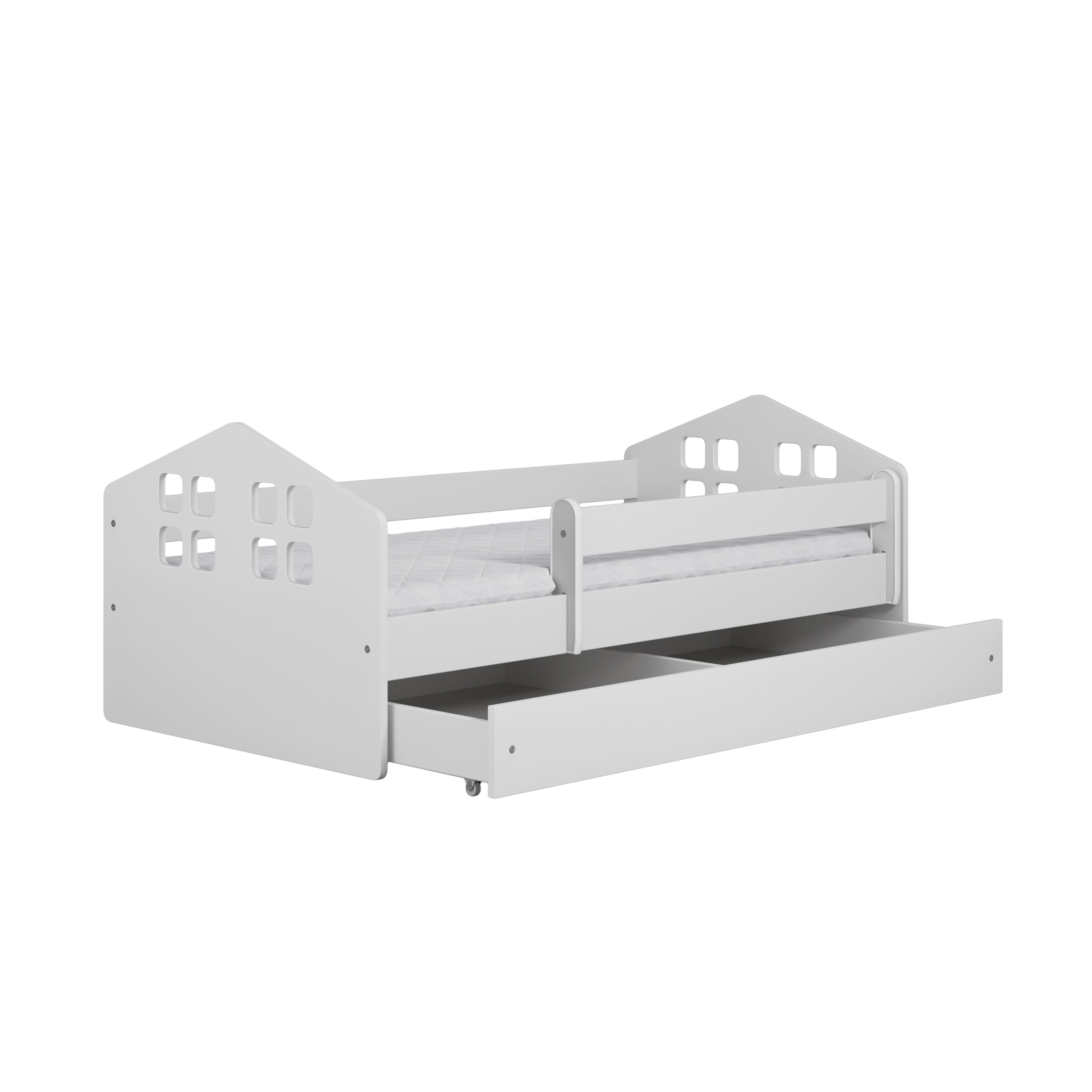Oryginalne fronty w kształcie domku nadają łóżku wyjątkowy charakter i tworzą przyjazną, inspirującą przestrzeń do snu oraz kreatywnej zabawy. To więcej niż mebel – to element wystroju, który rozwija dziecięcą wyobraźnię.