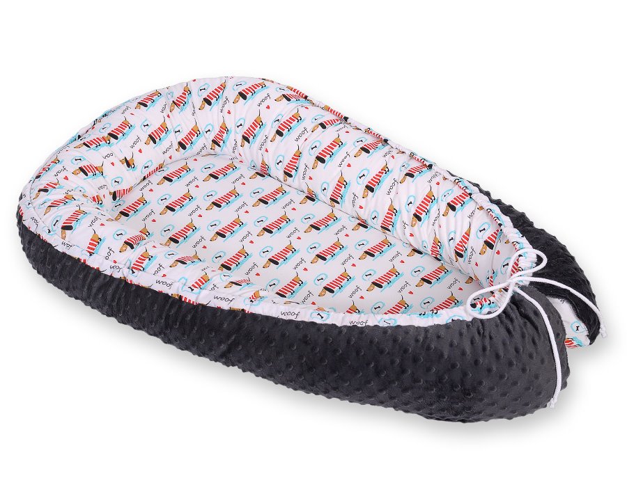 Kokon gniazdko dla niemowląt Premium to idealne rozwiązanie na pierwsze miesiące życia dziecka. Zapewnia maluszkowi poczucie bezpieczeństwa, bliskości i komfortu, przypominając warunki znane z brzucha mamy. Dzięki ograniczonej przestrzeni dziecko łatwiej się uspokaja, zasypia i śpi spokojniej.Dwustronny kokon wykonany jest z certyfikowanej bawełny oraz miękkiej tkaniny Minky, obie z certyfikatem Ökotex, bezpieczne dla delikatnej skóry niemowlęcia. Wypełnienie stanowi atestowane włókno ECO FILLBALL, sprężyste, lekkie i puszyste, zapewniające odpowiednią cyrkulację powietrza i komfort snu.