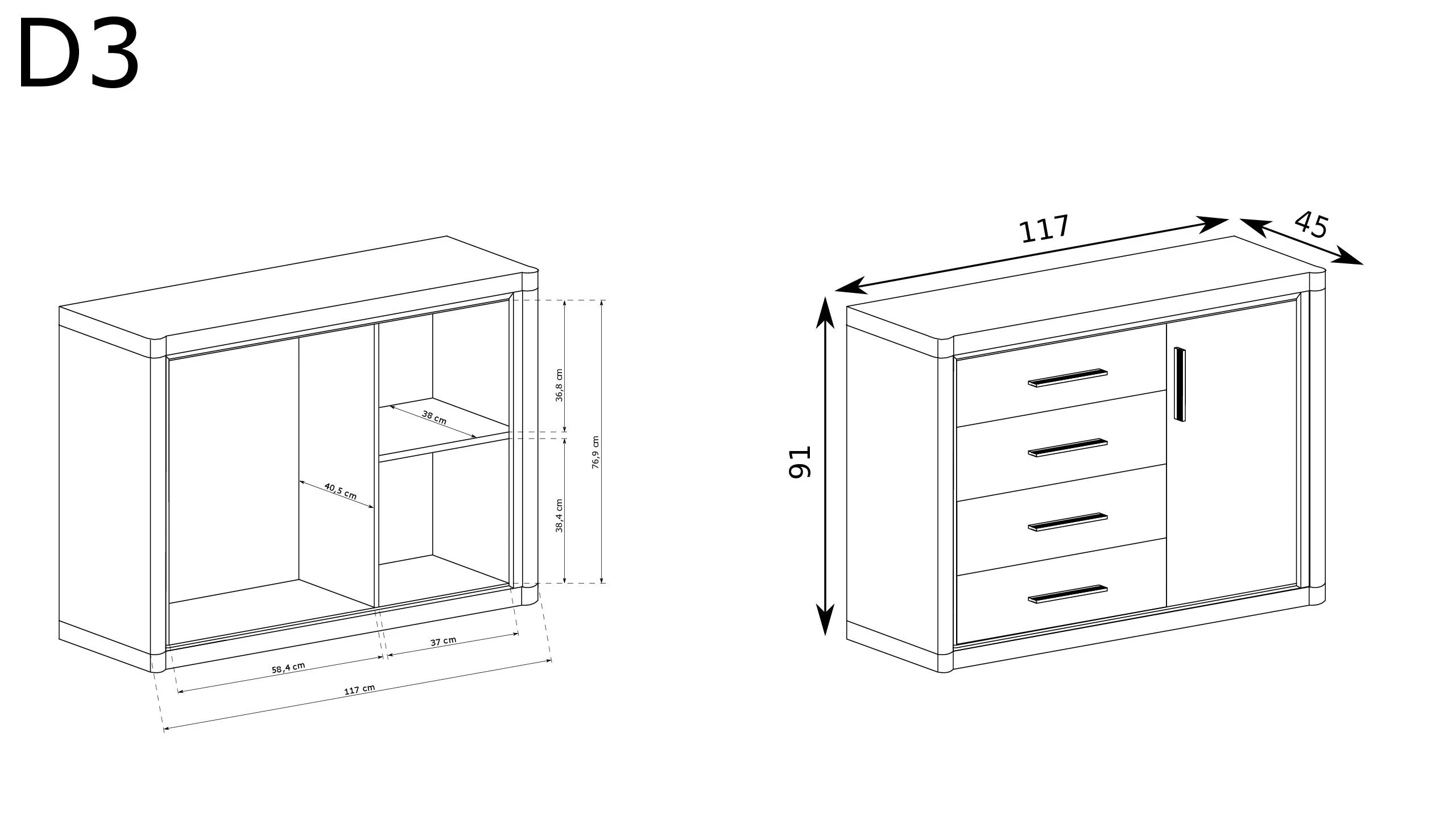 Komoda z kolekcji Dallas dostępna jest w dwóch wybarwieniach, co pozwala dopasować ją do różnych aranżacji – zarówno nowoczesnych, jak i bardziej klasycznych.