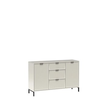 Nowoczesna komoda z trzema szufladami i dwiema szafkami z półkami. Pojemna, funkcjonalna i stylowa. Dostępna w kolorach cashmere, indigo i green stone.
