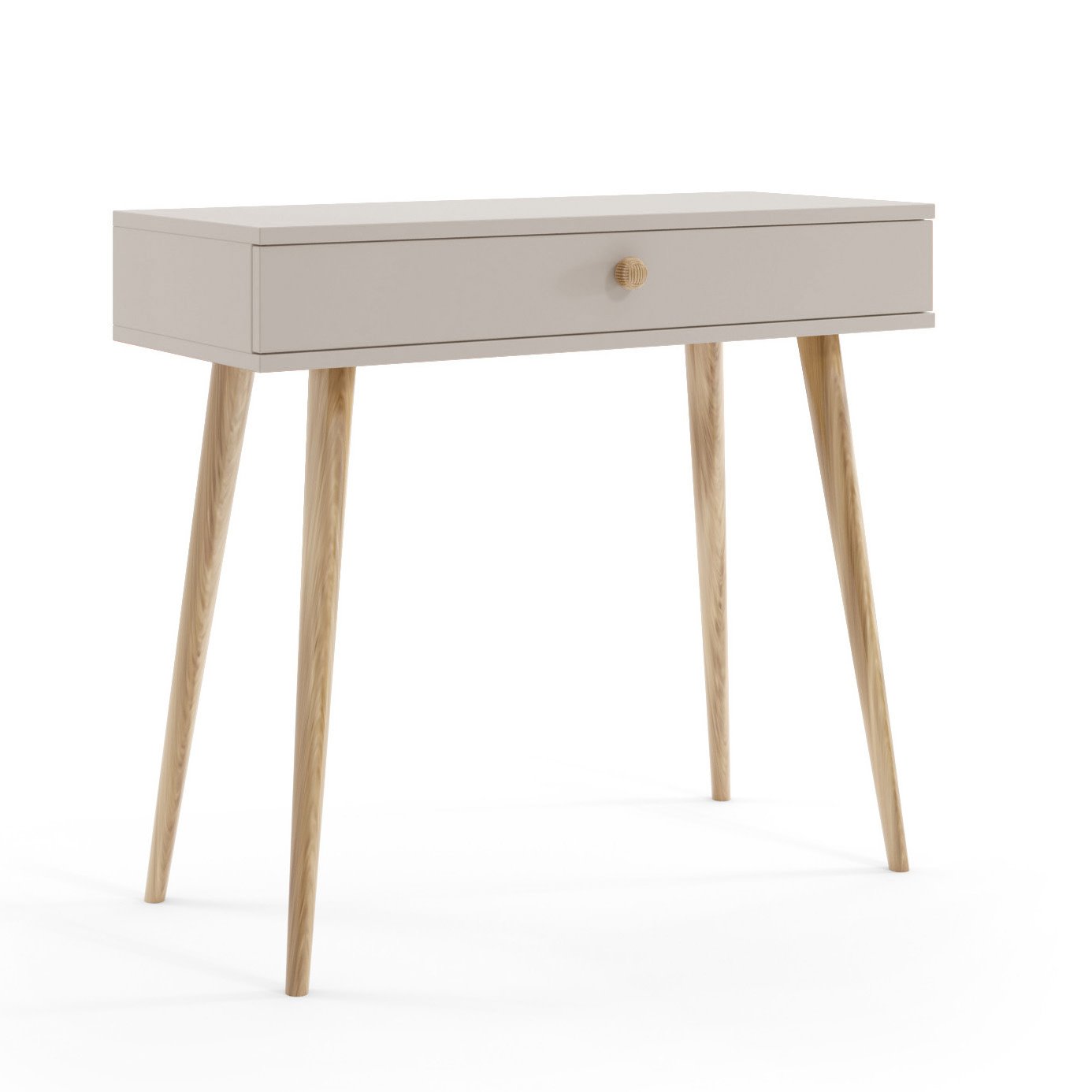 Charakterystycznym detalem jest sznurkowy uchwyt, który podkreśla styl boho i sprawia, że mebel wyróżnia się na tle klasycznych konsol.