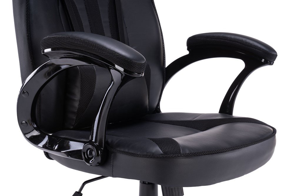 Obicie z połączenia ekoskóry i pianki MESH to praktyczne rozwiązanie – materiał jest przyjemny w dotyku, łatwy w utrzymaniu czystości i zapewnia odpowiednią wentylację. Dynamiczna stylistyka gamingowa sprawia, że fotel świetnie prezentuje się zarówno w pokoju gracza, jak i w domowym biurze.