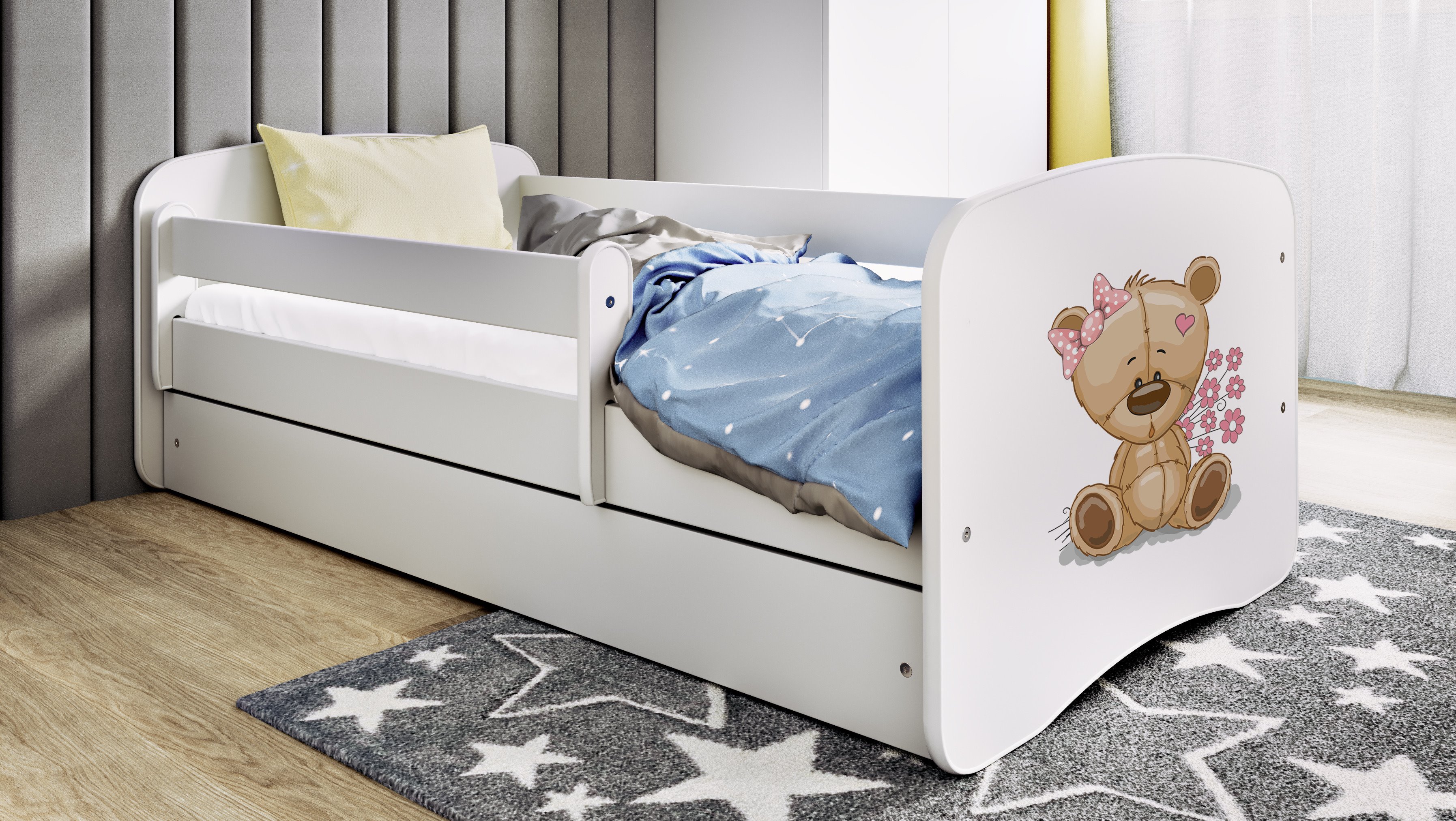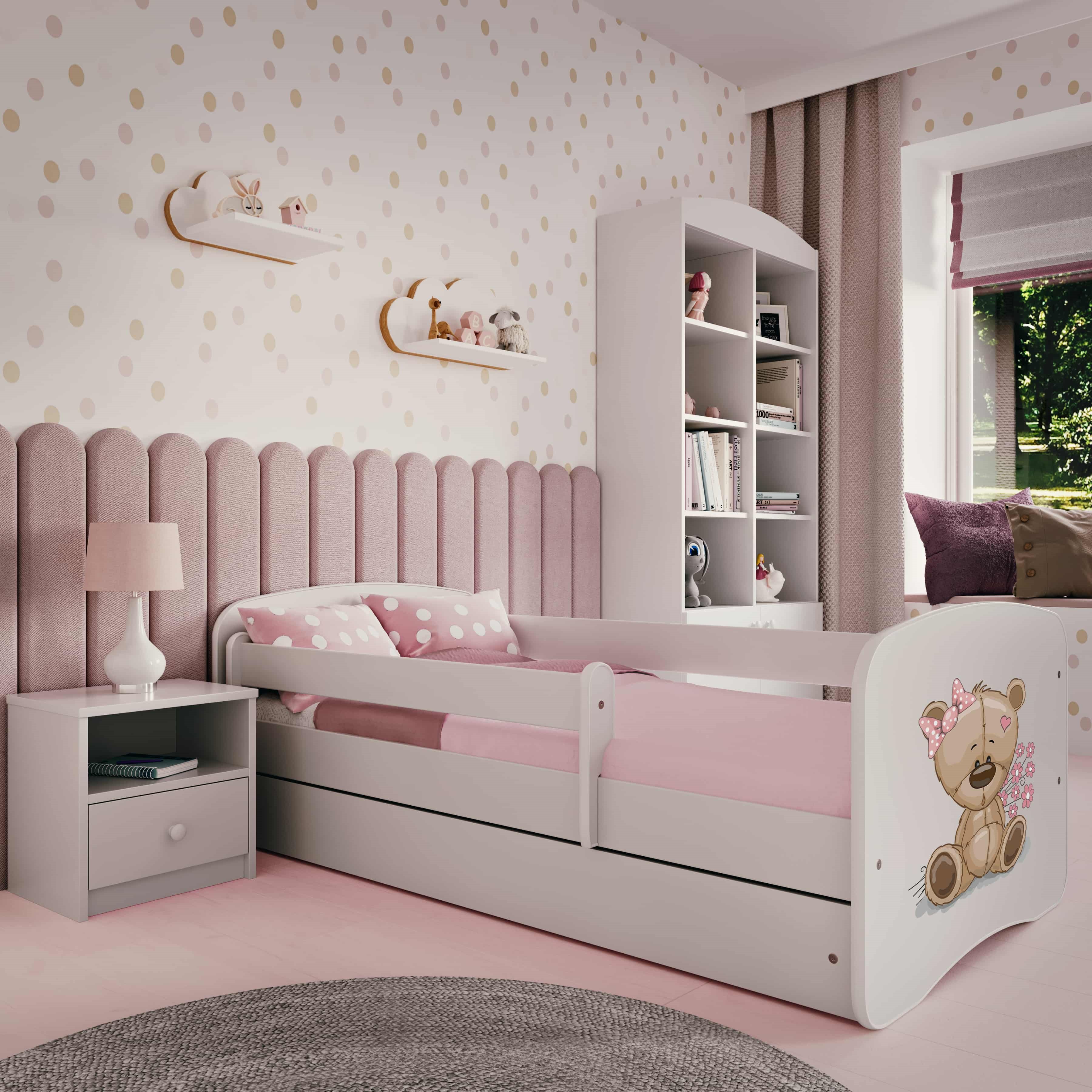 Wykonane z trwałej płyty laminowanej o grubości 18 mm, z bezpiecznymi, zaokrąglonymi krawędziami i ruchomą barierką, Babydreams spełnia najwyższe standardy wygody i bezpieczeństwa. Idealne do pokoju malucha lub przedszkolaka – zarówno chłopca, jak i dziewczynki.