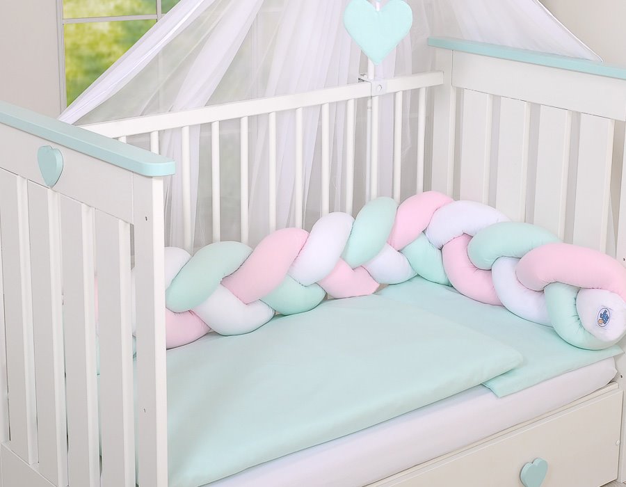 Ręcznie szyty, pleciony, mięciutki ochraniacz warkocz ładnie prezentuje się na łóżeczku, wykonany jest z najwyższej jakości bawełny.Pleciony ochraniacz do łóżeczka warkocz Knot Pillow 180 cm