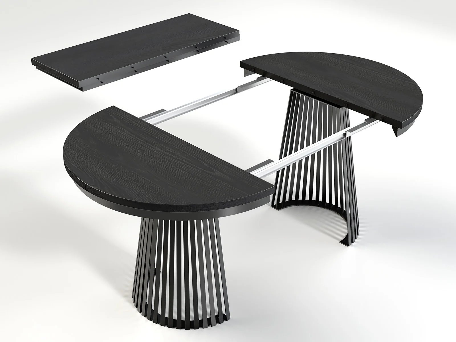 Stabilna podstawa stołu wykonana została z metalu i wyróżnia się rzeźbiarską, geometryczną formą. Ażurowa konstrukcja nadaje mu lekkości wizualnej, jednocześnie zapewniając solidność i bezpieczeństwo użytkowania. To element, który podkreśla designerski charakter stołu i czyni go centralnym punktem wnętrza.