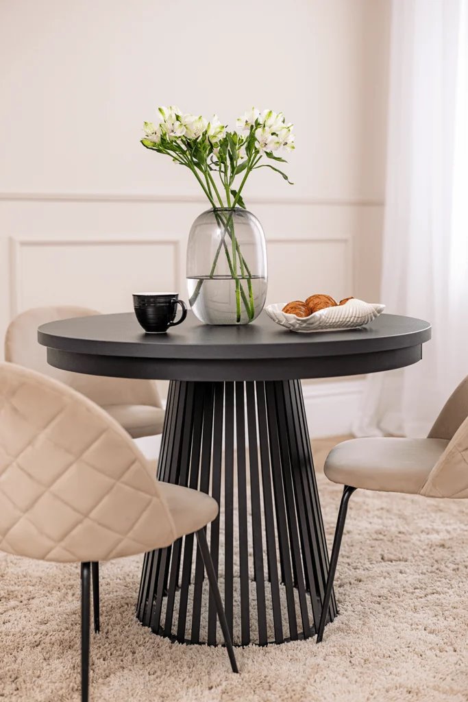Stół GARDA – nowoczesny design i funkcjonalność w eleganckiej formieStół GARDA to połączenie wyrazistego designu z codzienną funkcjonalnością. Jego okrągły blat oraz oryginalna, ażurowa podstawa tworzą spójną i harmonijną całość, która przyciąga wzrok i nadaje wnętrzu wyjątkowego charakteru. Model ten doskonale sprawdzi się zarówno w nowoczesnych, jak i bardziej klasycznych aranżacjach jadalni lub salonu.