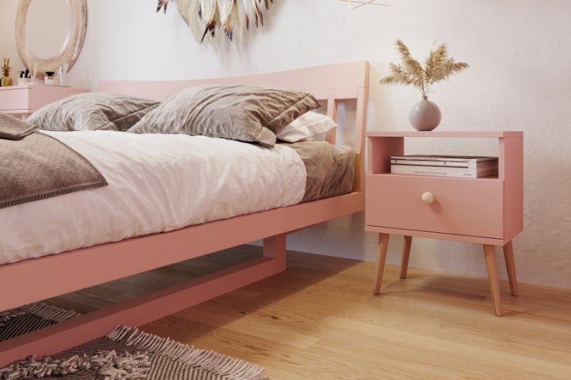 Stolik nocny BOHO został wyposażony w pojemną dolną szufladę, która pozwala przechowywać wszystkie najpotrzebniejsze przedmioty – książkę, okulary, ładowarkę czy kosmetyki – zawsze w zasięgu ręki. Nad szufladą znajduje się otwarta półka, idealna na rzeczy, które chcesz mieć na widoku, takie jak budzik, telefon czy dekoracje.