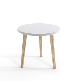 Stolik skandynawski z okrągłym blatem 67 cm i trzema nogami z litego drewna. Lekka forma, solidne wykonanie i naturalny styl sprawiają, że idealnie pasuje do salonu i nowoczesnych wnętrz.