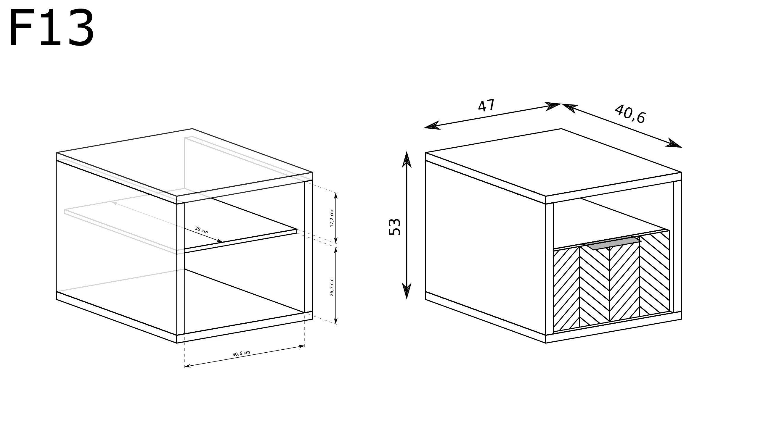 Stolik nocny FONTI w kolorze dąb karmel to idealne uzupełnienie każdej sypialni, łączące funkcjonalność z ponadczasowym designem. Doskonale komponuje się z łóżkiem, tworząc spójną i elegancką aranżację wnętrza.Model wyposażony jest w głęboką szufladę, zamykaną na cichy domyk, która pomieści wszystkie niezbędne drobiazgi, oraz praktyczną półkę, idealną na książkę, telefon czy dekoracje. Prosta forma stolika została przełamana subtelną nietuzinkowością, charakterystyczną dla kolekcji FONTI, co sprawia, że mebel prezentuje się nowocześnie, a jednocześnie klasycznie.