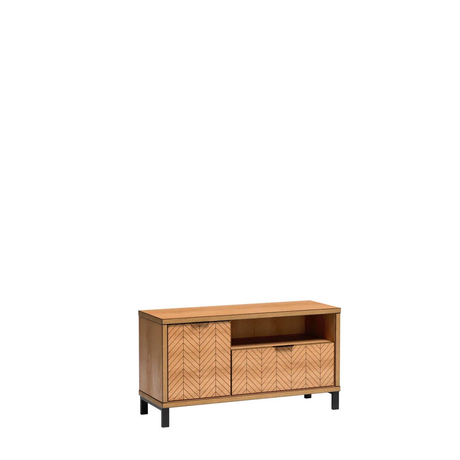 Klasyczna szafka RTV FONTI w kolorze dąb karmel to elegancki i ponadczasowy mebel, który doskonale uzupełni aranżację salonu urządzonego w stylu klasycznym, nowoczesnym lub tradycyjnym. Ciepły odcień drewna nadaje wnętrzu przytulności, a harmonijna forma sprawia, że szafka idealnie komponuje się z pozostałymi meblami.Centralnie umieszczona pojemna szuflada umożliwia wygodne przechowywanie pilotów, dokumentów czy akcesoriów RTV, natomiast otwarta półka nad szufladą doskonale sprawdzi się jako miejsce na dekoder, konsolę lub odtwarzacz multimedialny. Boczne części szafki wyposażone w pełne fronty skrywają praktyczne półki, które pomagają zachować porządek w strefie telewizyjnej.