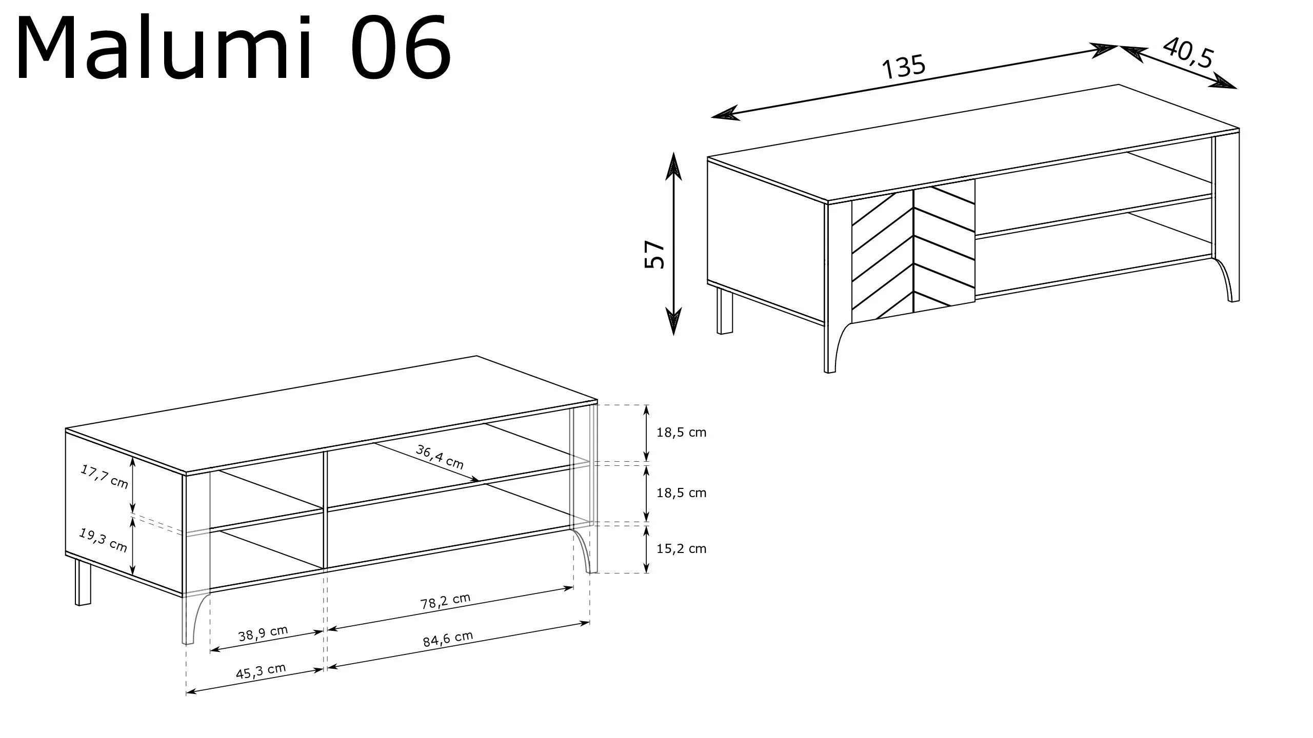 Szafka RTV MALUMI – nowoczesna elegancja i funkcjonalnośćSzafka RTV MALUMI to nowoczesne i funkcjonalne rozwiązanie stworzone z myślą o miłośnikach eleganckiego designu oraz praktycznych wnętrz. Minimalistyczna bryła w połączeniu z frontami zdobionymi wzorem w jodełkę nadaje meblowi ponadczasowy charakter, który doskonale odnajdzie się zarówno w nowoczesnych, jak i klasycznych aranżacjach salonu.