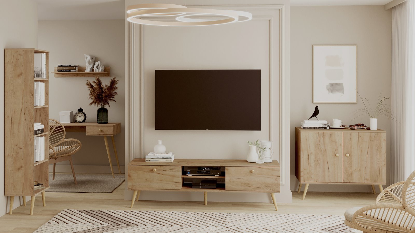 Szafka RTV – minimalistyczny design, funkcjonalność i trwałość na lataSzafka RTV została zaprojektowana z myślą o osobach, które cenią minimalizm, klasykę oraz oryginalne detale. Smukła forma i starannie dobrane proporcje sprawiają, że mebel jest wyjątkowo pojemny i funkcjonalny, a jednocześnie nie zajmuje dużo miejsca w salonie. To idealne rozwiązanie zarówno do nowoczesnych, jak i skandynawskich oraz boho aranżacji wnętrz.
