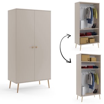 zafa skandynawska na drewnianych nogach z cichym domykiem. Funkcjonalne wnętrze z półkami i drążkiem, solidna płyta 18 mm i możliwość różnych konfiguracji. Idealna do sypialni i garderoby.