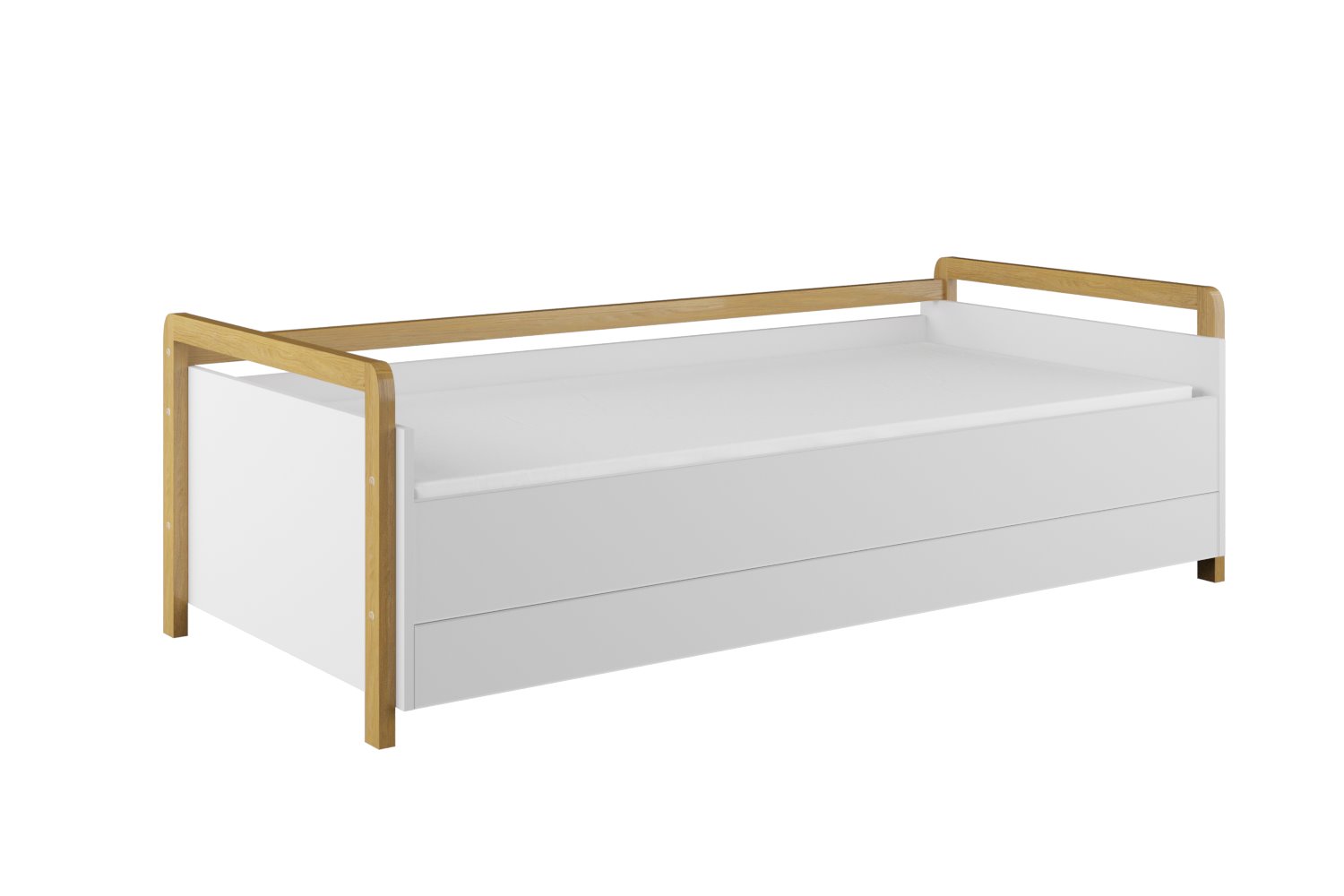Tapczan Victor – skandynawski styl w nowoczesnym wydaniuTapczan Victor to harmonijne połączenie szlachetnego drewna dębowego z czystą bielą, które idealnie wpisuje się w stylistykę skandynawską. Jego prostota, ergonomia oraz funkcjonalność tworzą idealną przestrzeń do odpoczynku i wyciszenia. Naturalne materiały i dopracowane detale sprawiają, że każde łóżko z tej kolekcji jest unikatowe.