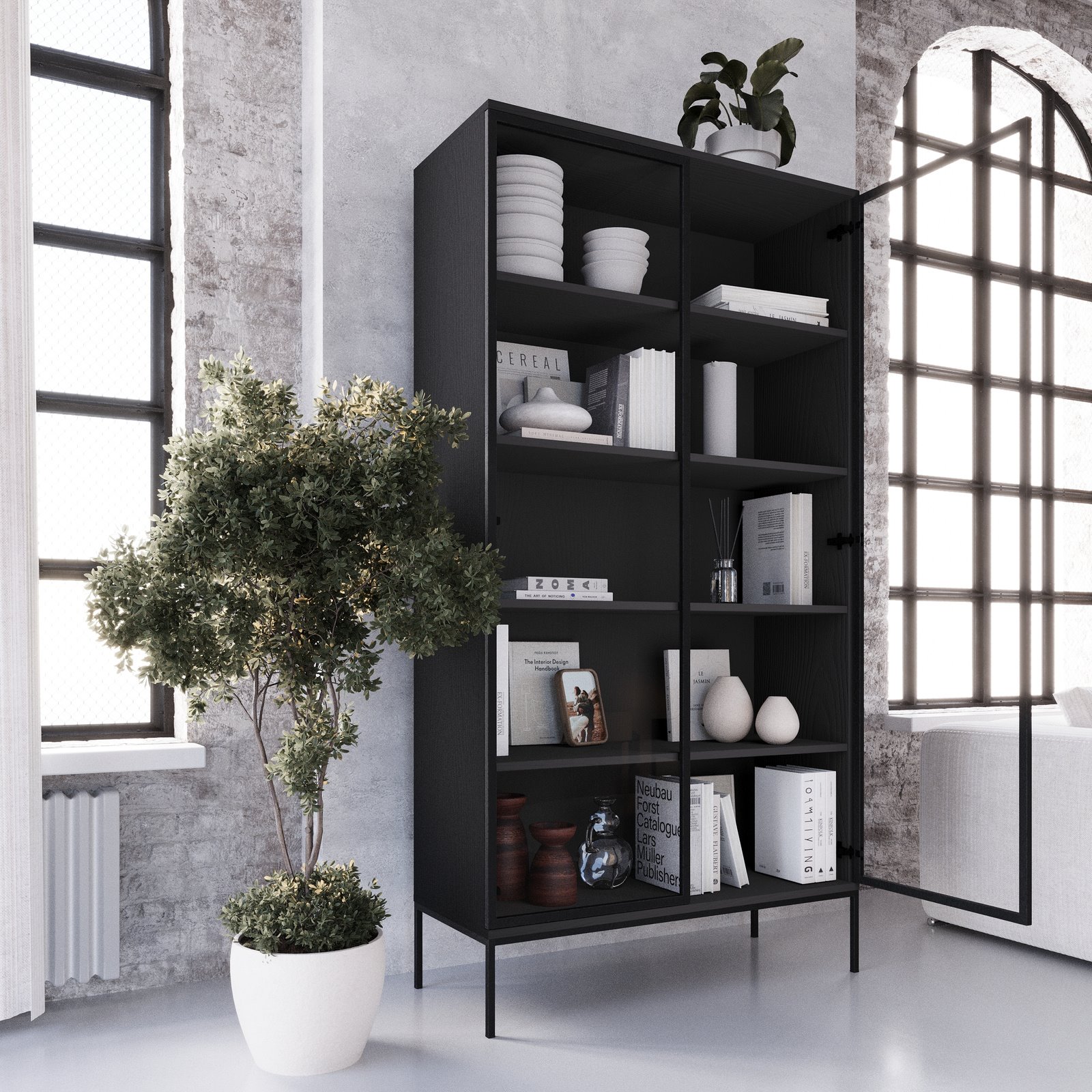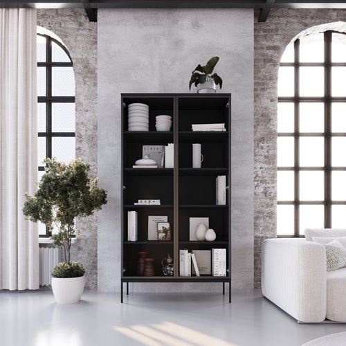 Jeśli szukasz czarnej witryny industrialnej ze szklanymi drzwiami, która efektownie wyeksponuje dekoracje i jednocześnie stanie się mocnym akcentem aranżacyjnym, model z kolekcji INDUST będzie doskonałym wyborem.